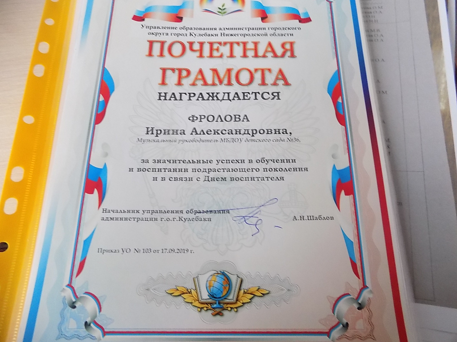 "Почётная грамота" Управление образования.г.о.г. Кулебаки