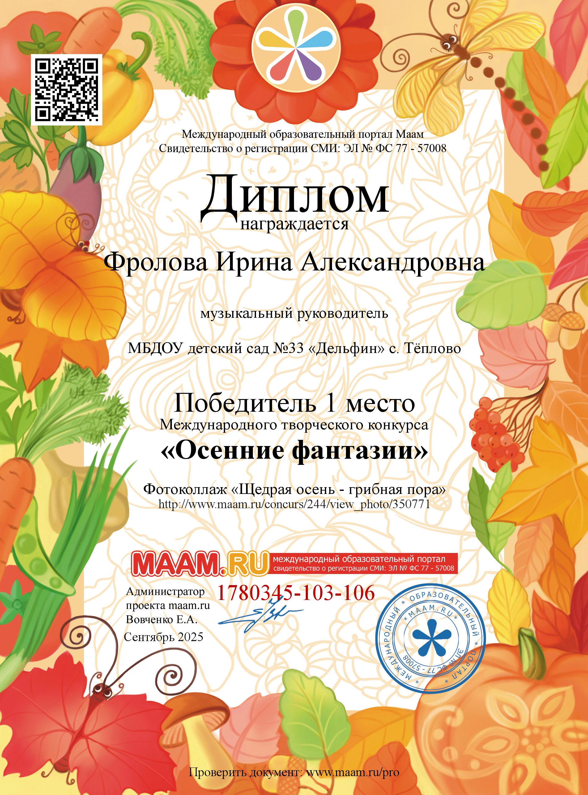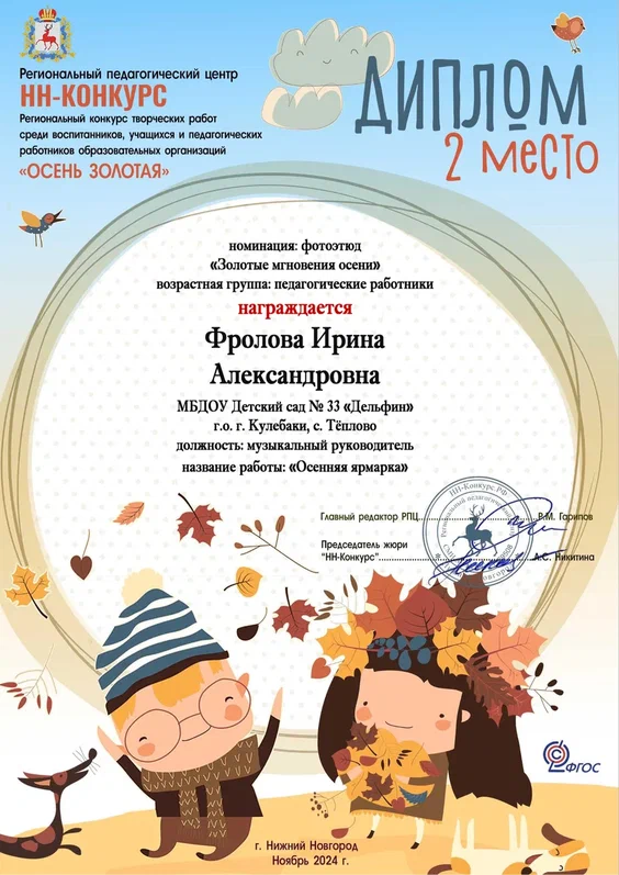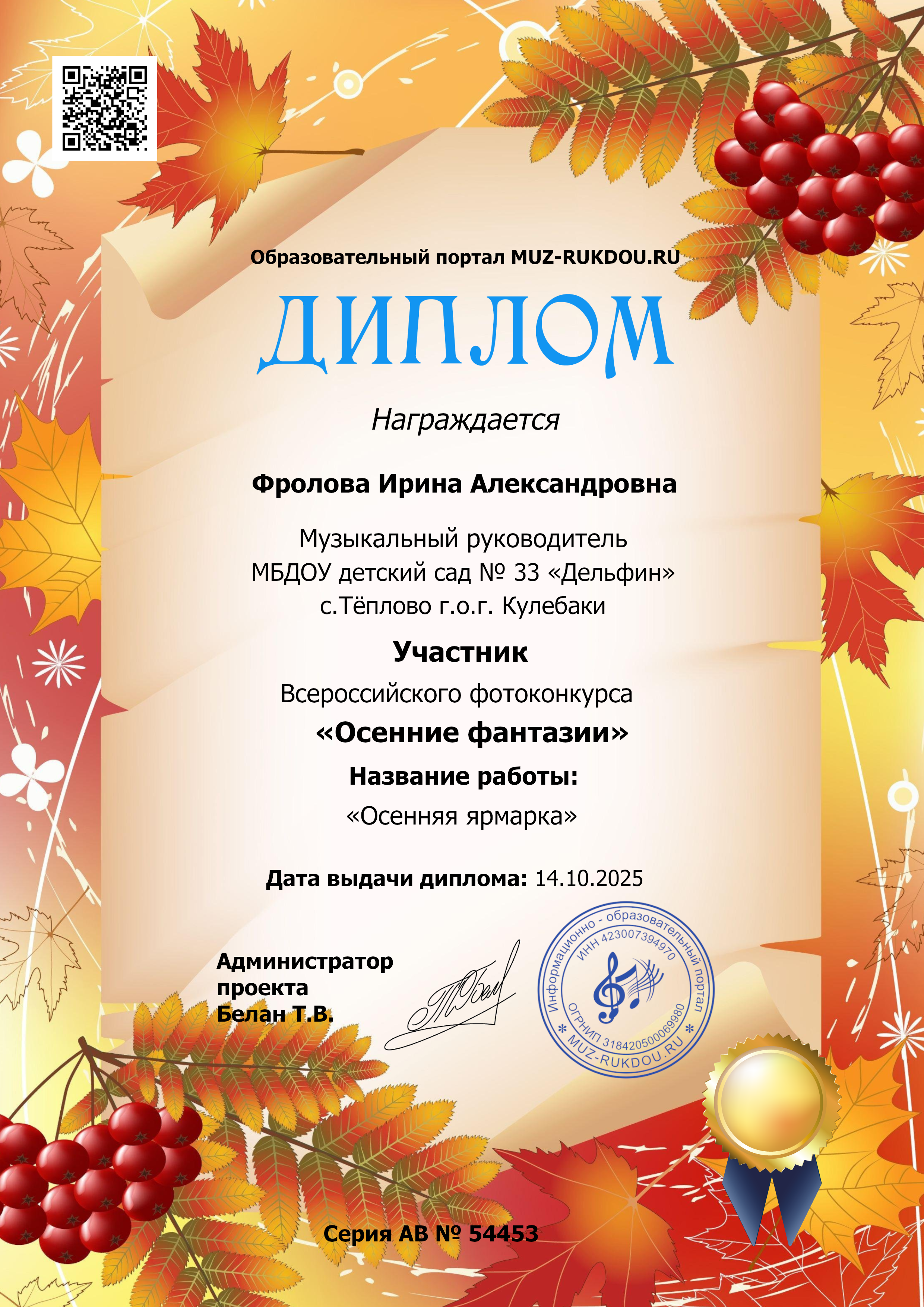 Диплом участника Всероссийского фотоконкурса работа "Осенняя ярмарка"