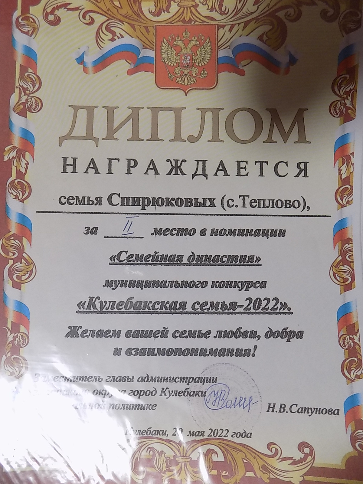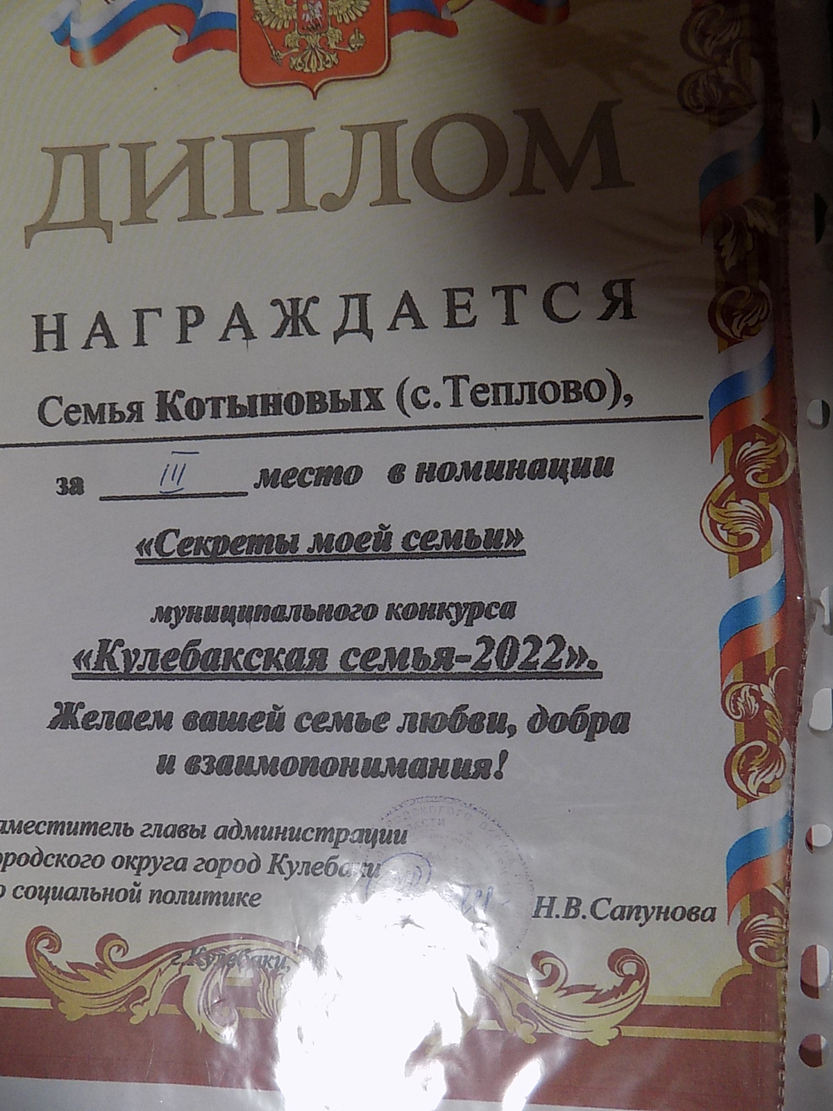 Семья Спирюковых 2 место номинация "Семейная династия" Семья Котыновых 3 место номинация "Секреты моей семьи"
