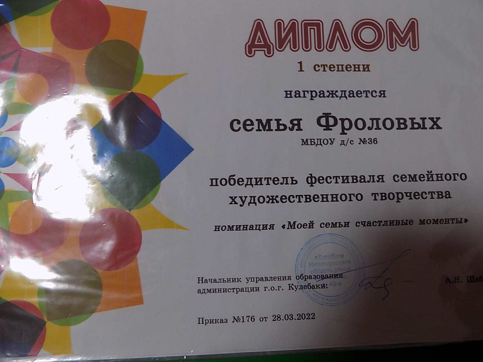 Семья Фроловых диплом 1 степени номинация "Моей семьи счастливые моменты"