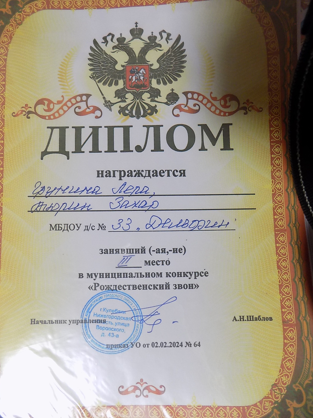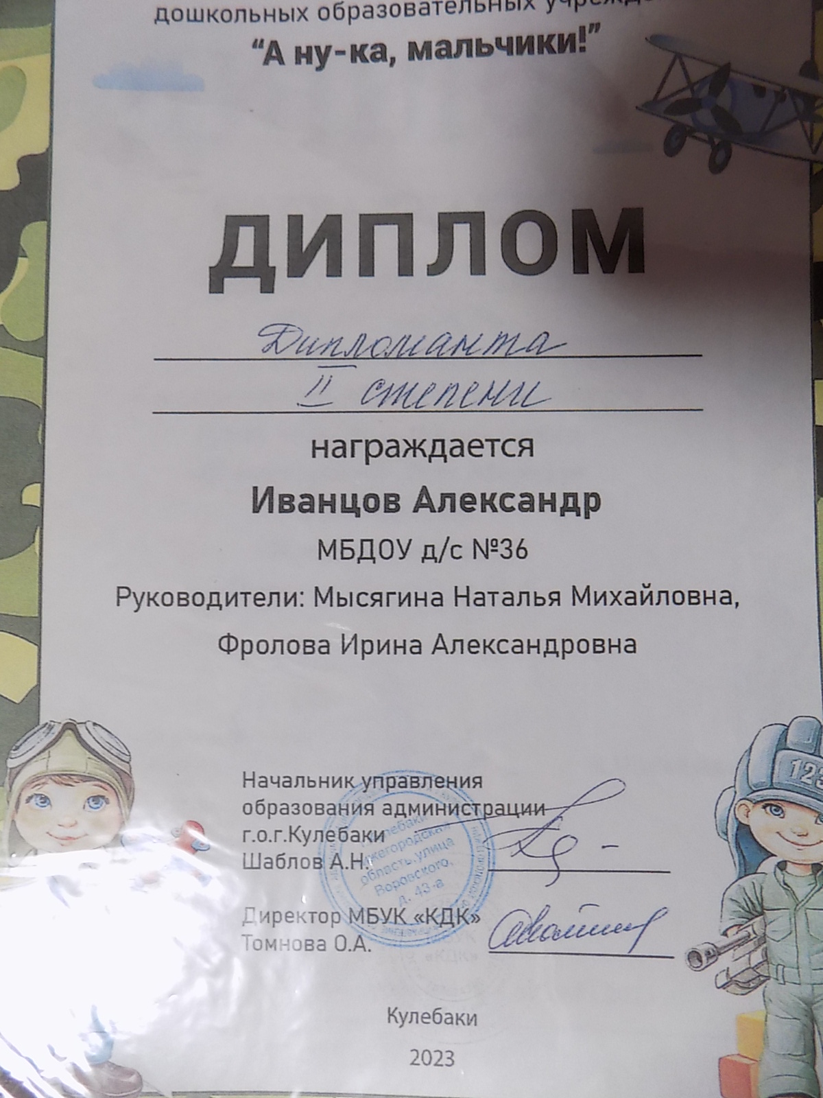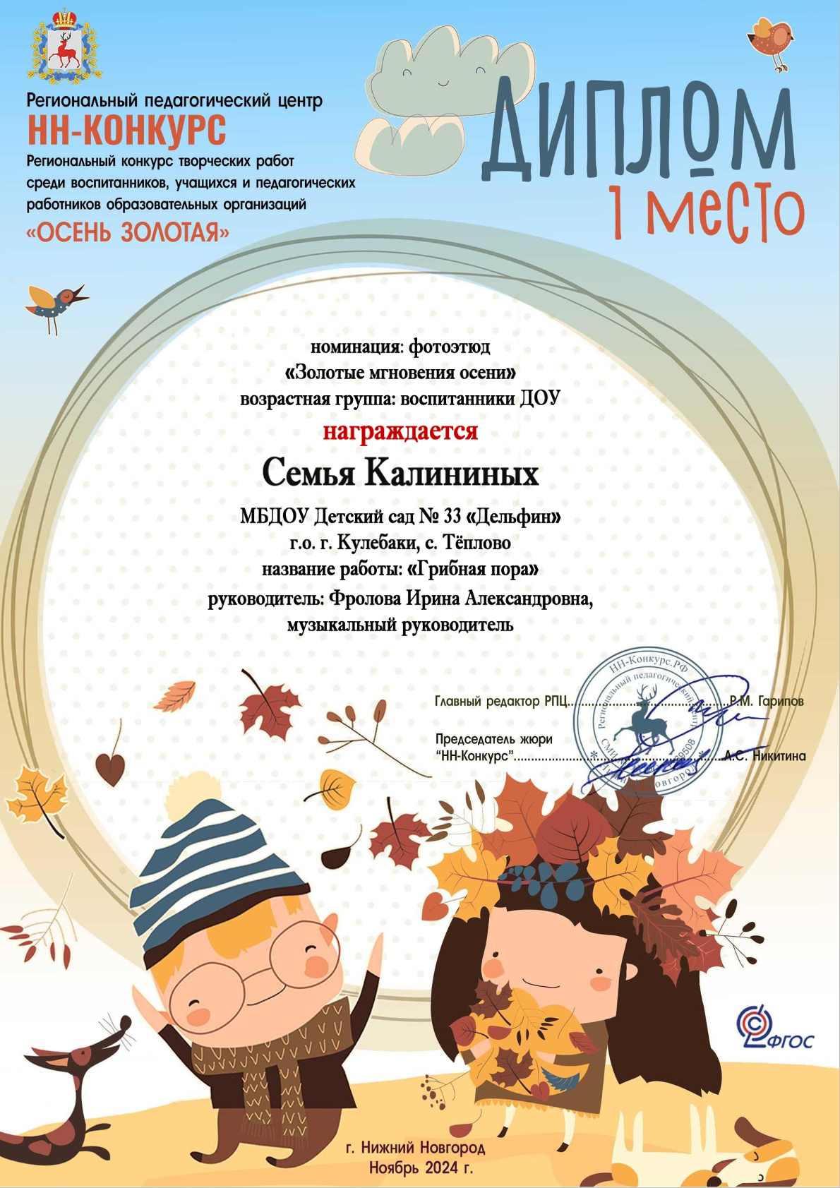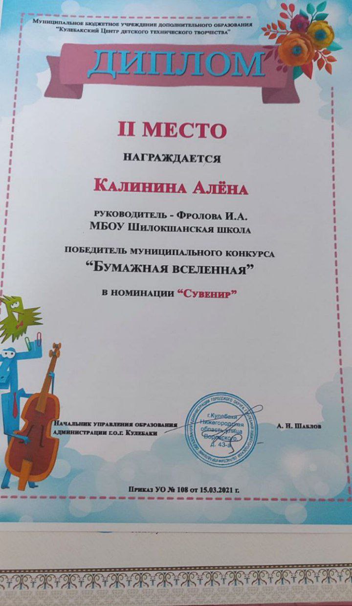 Диплом Калинина Алёна 2 место Сертификат участника Цыганова Лиза