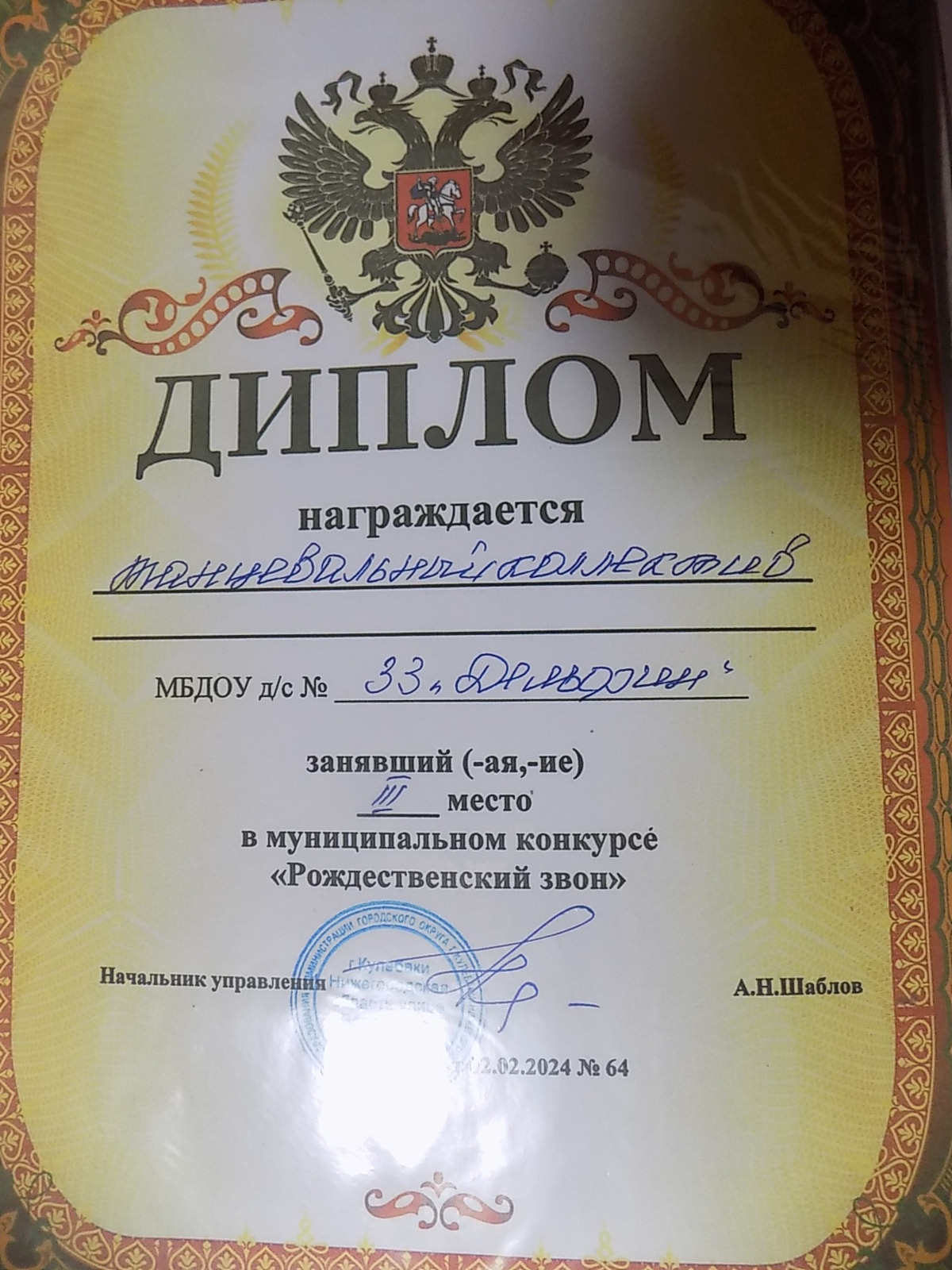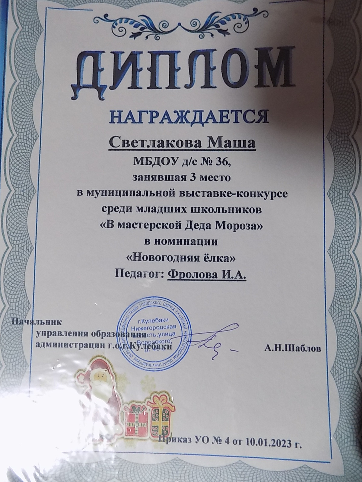 Светлакова Маша Номинация "Новогодняя ёлка" 3 место